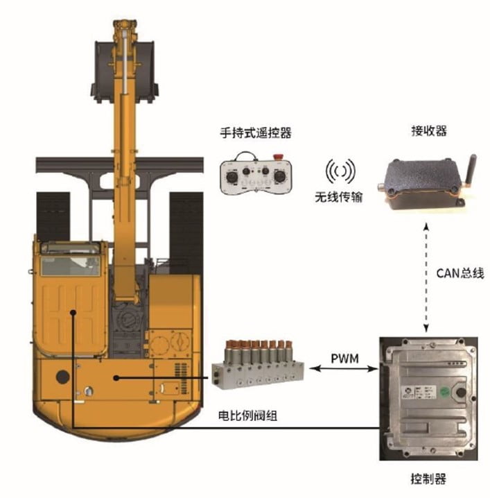 お客様はリモコンを使用して、パワーショベルを視界内で遠隔制御することができます。